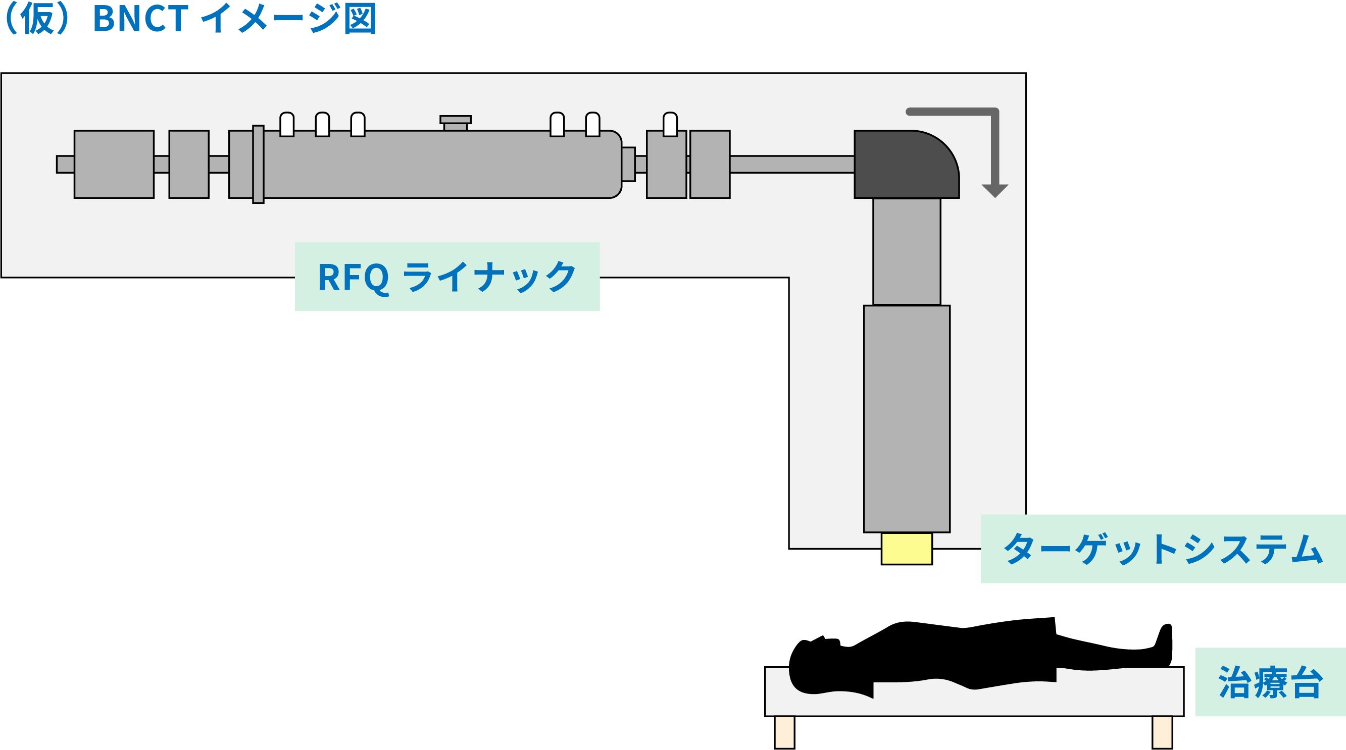 「原子炉」というBNCTを普及させるための制約から解放されるために「加速器」という、病院に設置することができる小型加速器が開発されました。 核燃料を使用せず、電源を切れば放射線が射出されません。 今までと違った方法で、治療に必要な中性子が出せるようになりました。 一般の医療機関にも導入が可能となり、多くのがん患者さんにこのBNCTを提供できるようになります。医療としての普及の可能性が広がり、BNCTによるがん治療に注目が集まっています。